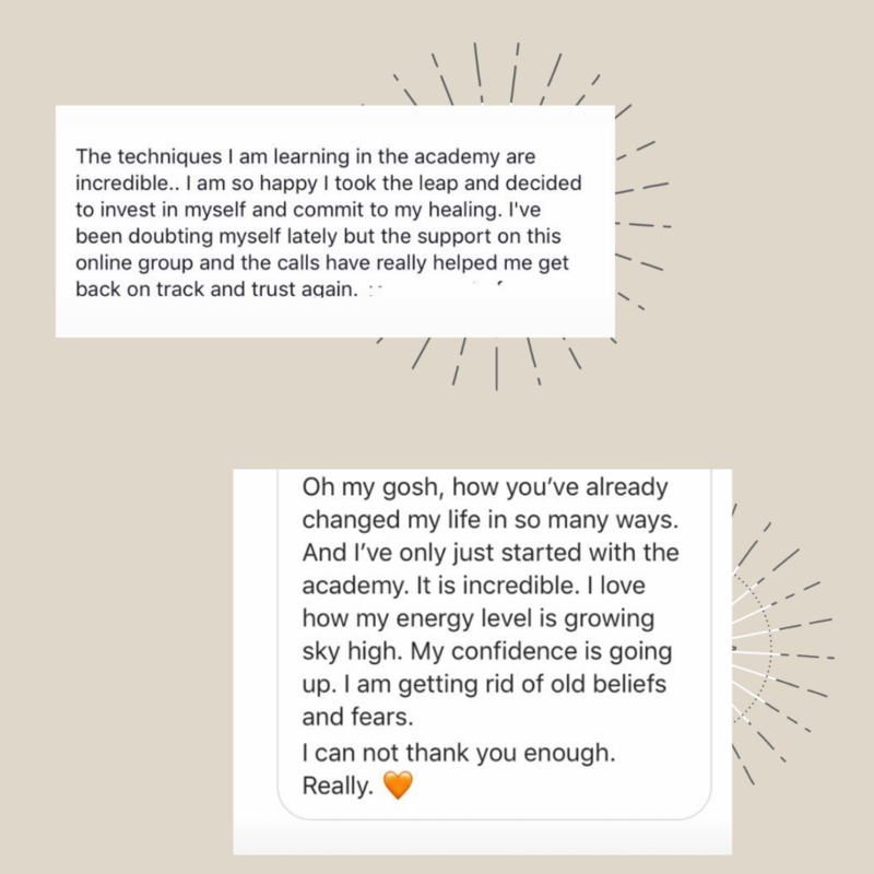 "Since I joined the Academy, I feel more ease in my life. Sarah said, if I join the Academy, my life will change and it was so true. I am discovering new things about myself everyday, healing my wounds, recoding myself and living more authentically to my true self.... I'm feeling so grateful to be part of this circle and experience. "